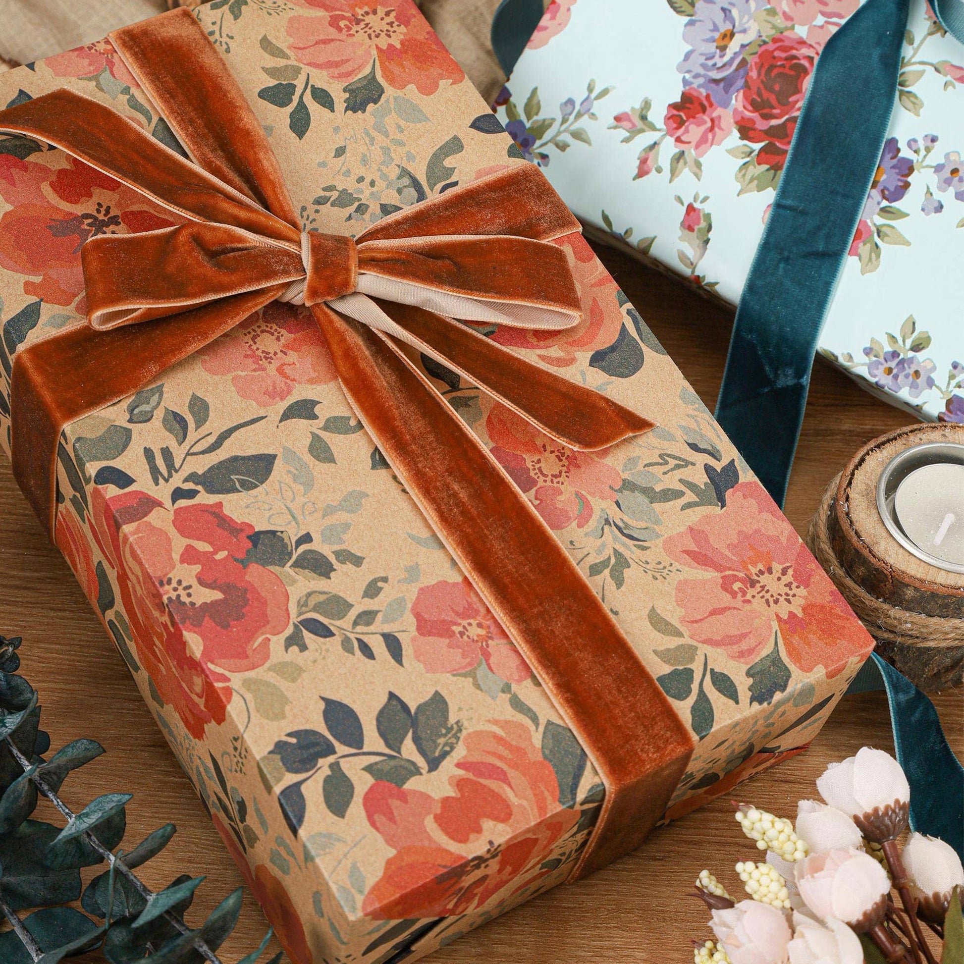 * Elegant Floral Design: Elevate your gift presentations with our Kraft Pink Floral Wrapping Paper, featuring an elegant and charming floral design. The soft pink hues and floral patterns add a touch of sophistication to your gifts.