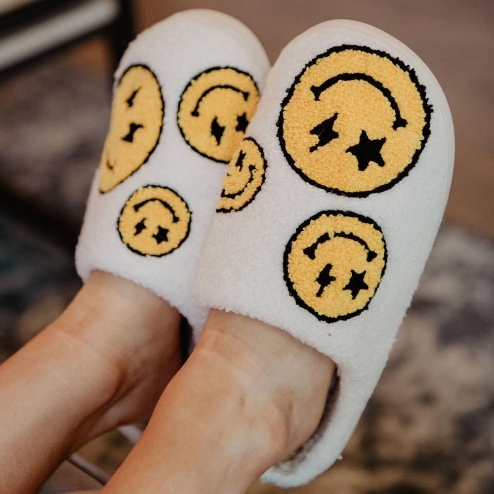 Katydid Wholesale is proud to offer our Star and Lightning Eyes Happy Faces Slippers – the perfect way for your boutique store to bring a smile to your customers' faces! These adorable fuzzy slippers provide comfort and whimsy in equal measure, thanks to their bright yellow design. With star eyes and lightning bolt smiles, these little happy faces are sure to be a hit with teen girls and young women alike!