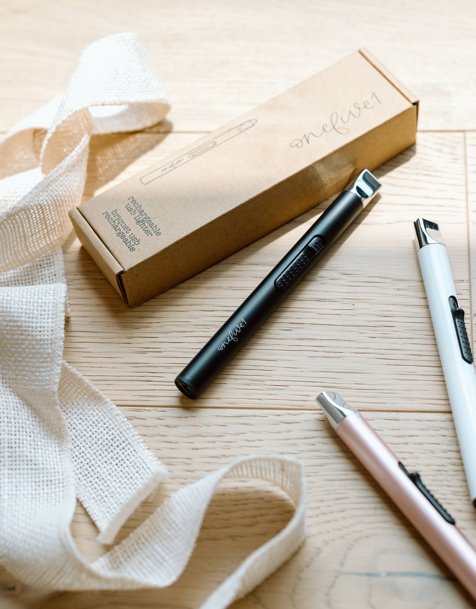 usb lighter comes in three different colours, matte black, white & rose gold